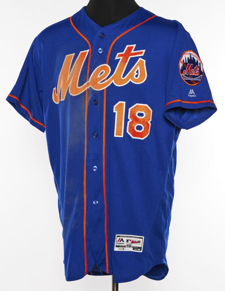 Travis d’Arnaud had two hits and drove in two runs as the Mets defeated the Atlanta Braves at home, 3-2. It was d’Arnaud’s home run in the 8th inning that was the final margin. With their 219th home run the Mets set a single-season record for long balls. Sadly the Home Run Apple malfunctioned — maybe from overuse — and didn’t pop up until three batters later! The Mets ended up hitting 224 that season but broke their own record two seasons later.
